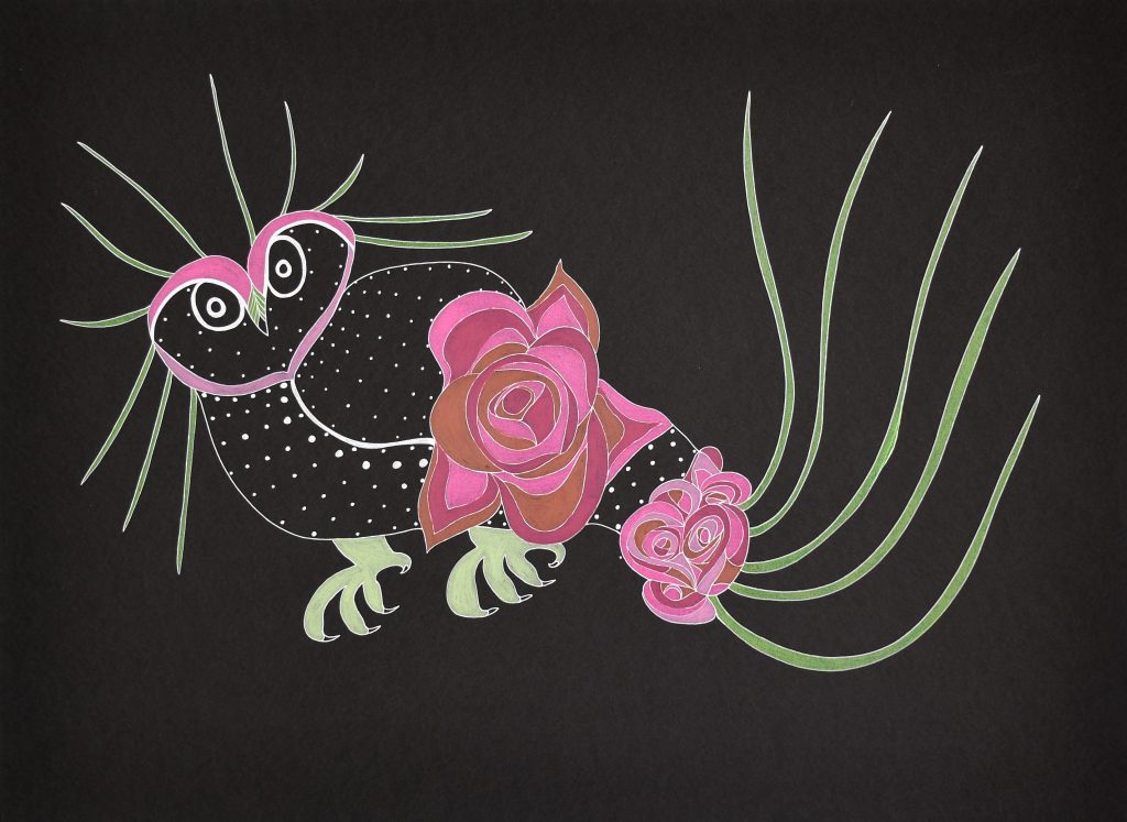 Untitled Drawing (Owl & Flowers)